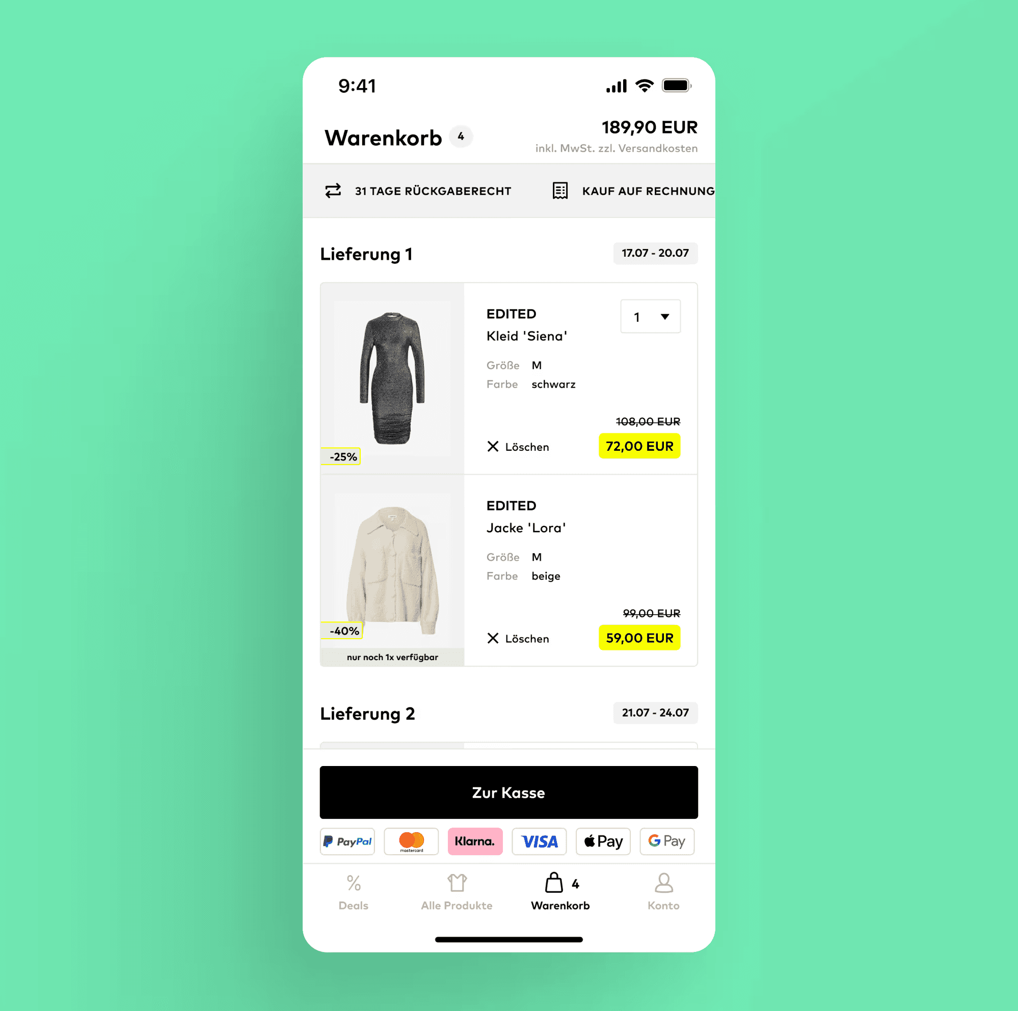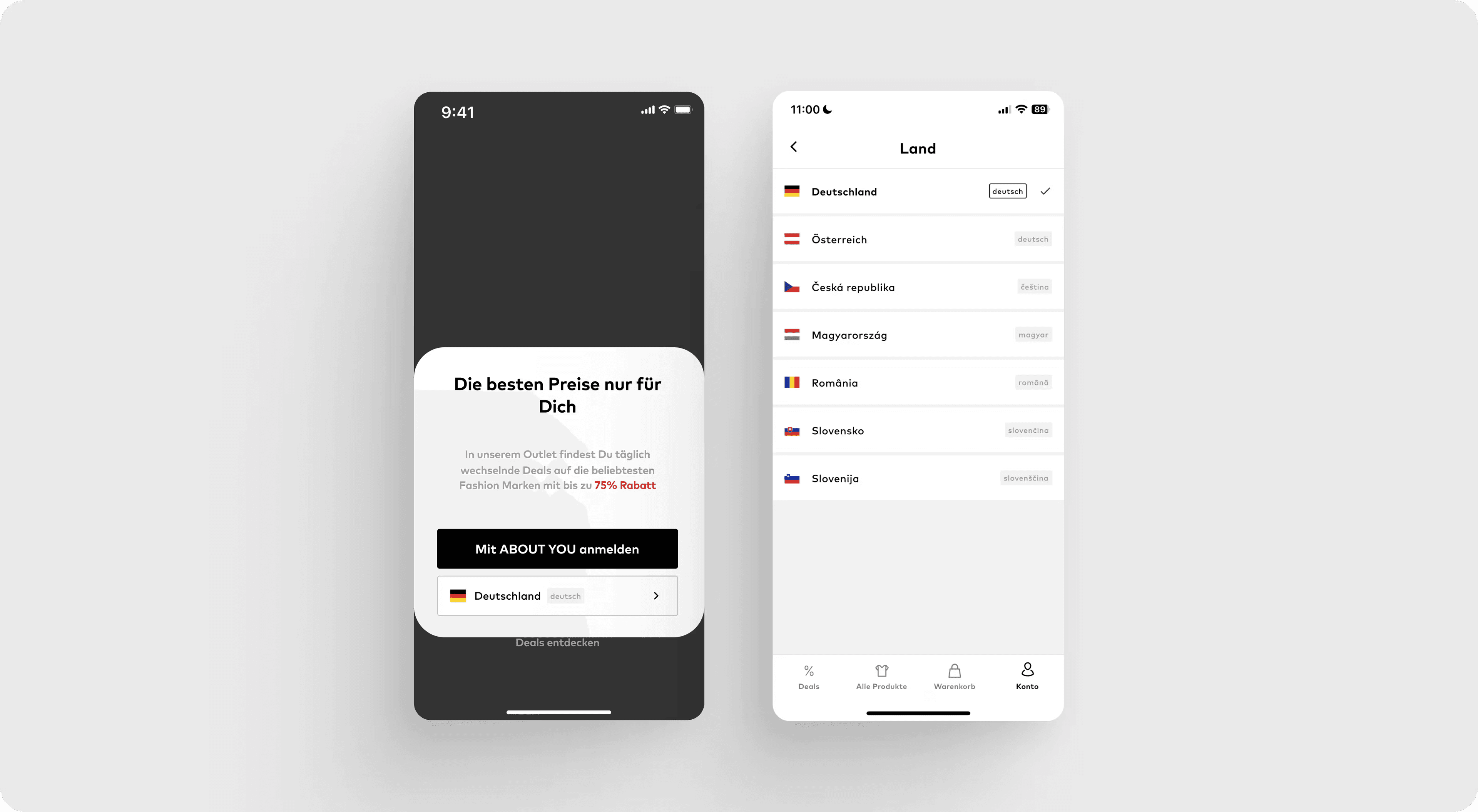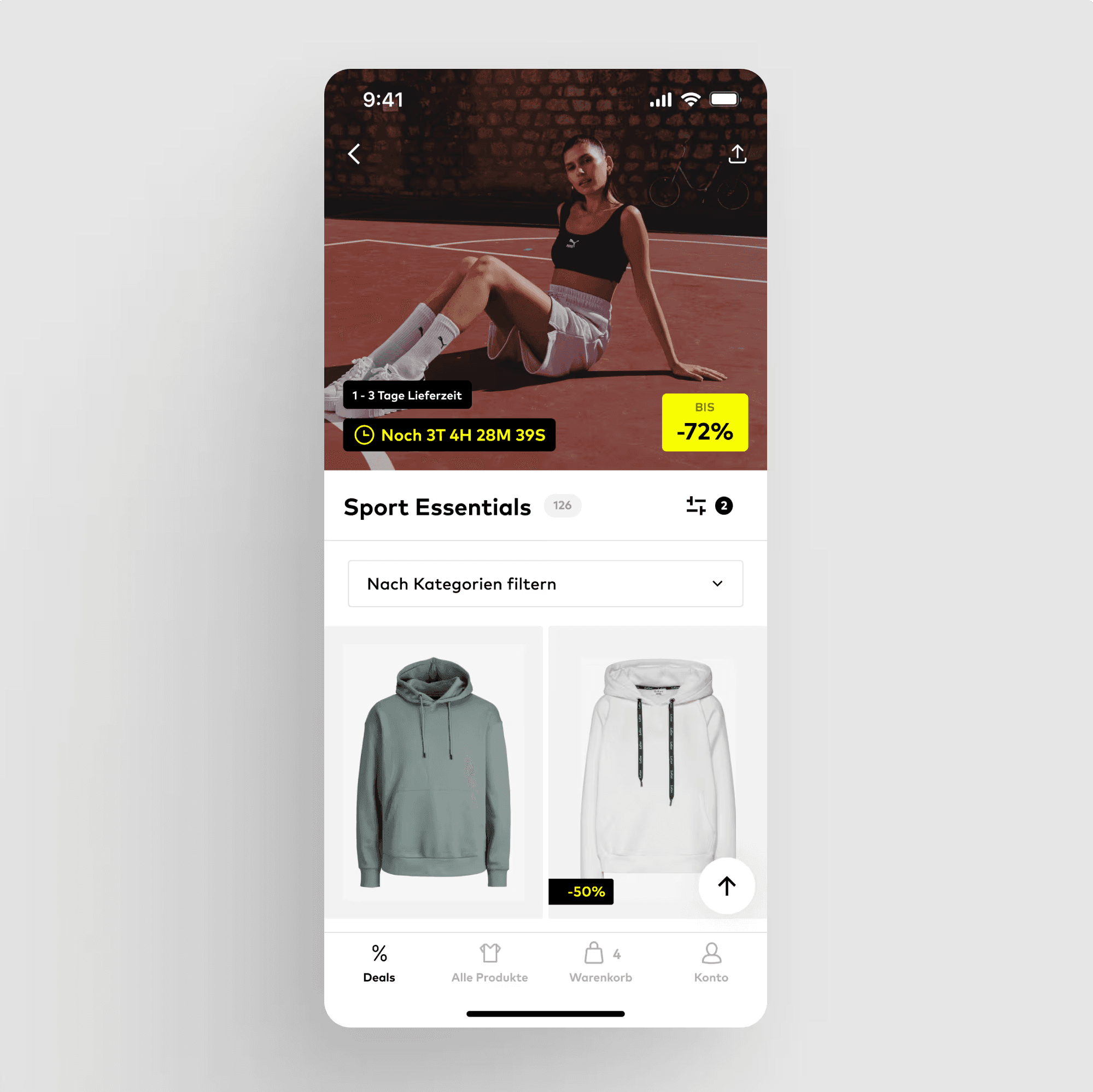 Alle Onlineshopper*innen kennen ABOUT YOU. Mit dieser Smartphone und Tablet-App kam das zugehörige Outlet hinzu. Wir haben das Projekt von den frühen Konzepten bis zur finalen Übergabe an ein internes Team begleitet. Mit Flutter für Cross-Plattform-Engineering haben wir eine effiziente und leistungsstarke App entwickelt, die den Nutzer*innen ein top-bewertetes Einkaufserlebnis bietet.