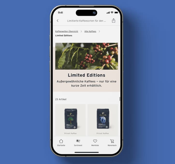 Tchibo, bekannt für seine erstklassigen Kaffees und innovativen Produkte, hat sich mit uns zusammengetan, um die Mobile-Shopping-App neu zu gestalten.