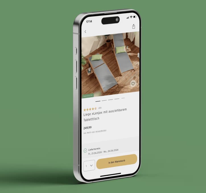 Bei der Neuentwicklung der App haben wir von Grund auf neu begonnen, um eine intuitiv bedienbare und schnelle Benutzeroberfläche zu schaffen. Unser Ziel war es, ein einfacheres und übersichtlicheres Einkaufserlebnis zu bieten. Dank einer optimierten Navigation und einem schlankeren Design haben wir die Usability erheblich verbessert, sodass Nutzer*innen jetzt Inhalte leichter finden und sich inspirieren lassen können.