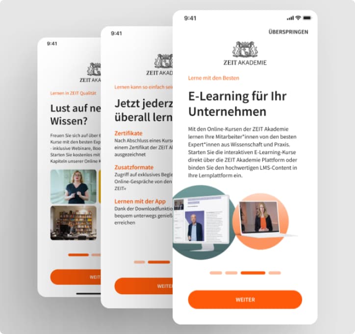 Das E-Learning-Angebot des ZEIT-Verlags. Nichts ist für Unternehmen und Interessierte derzeit relevanter als digitale Fortbildungsangebote. Protofy entwickelte die passende App!