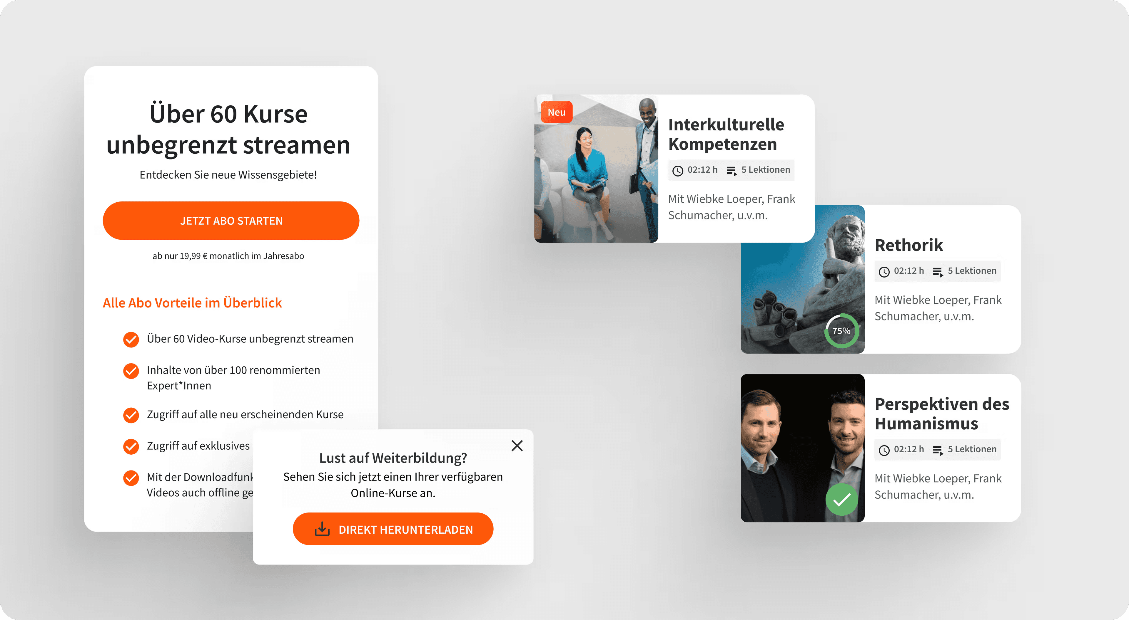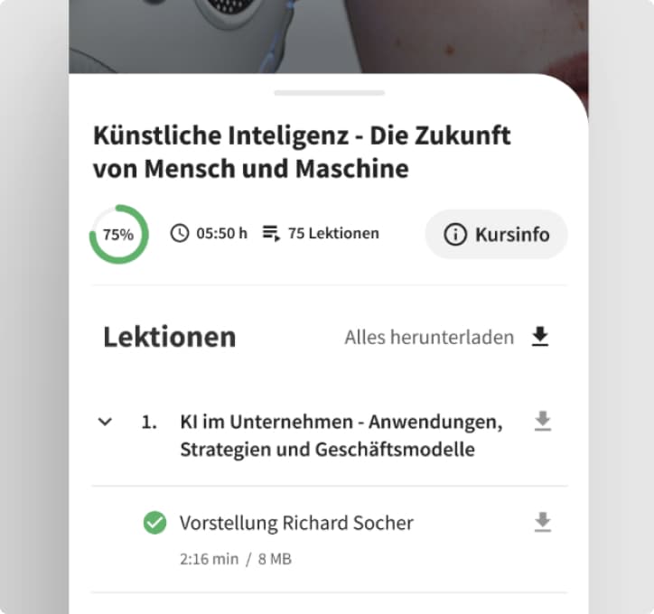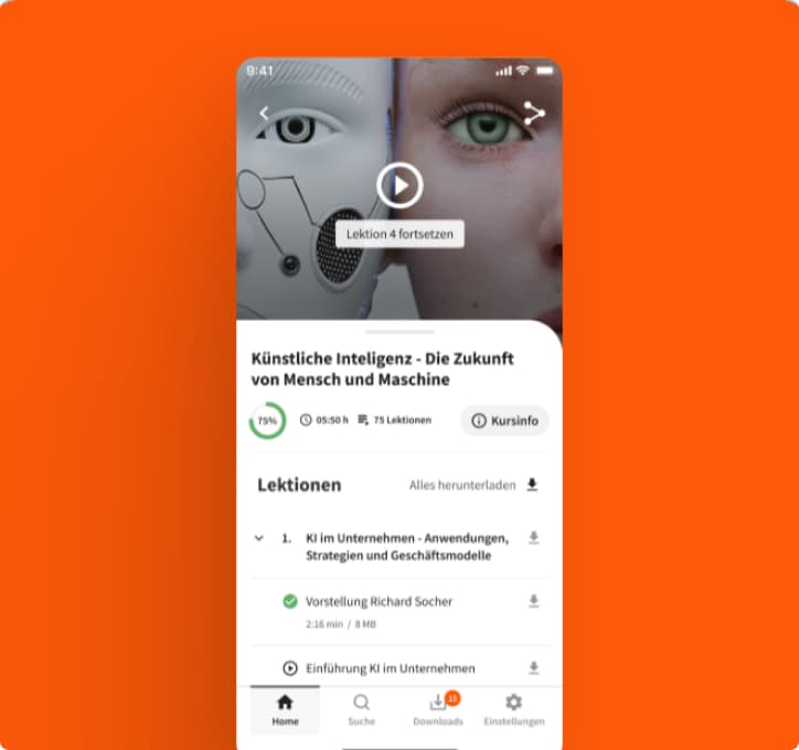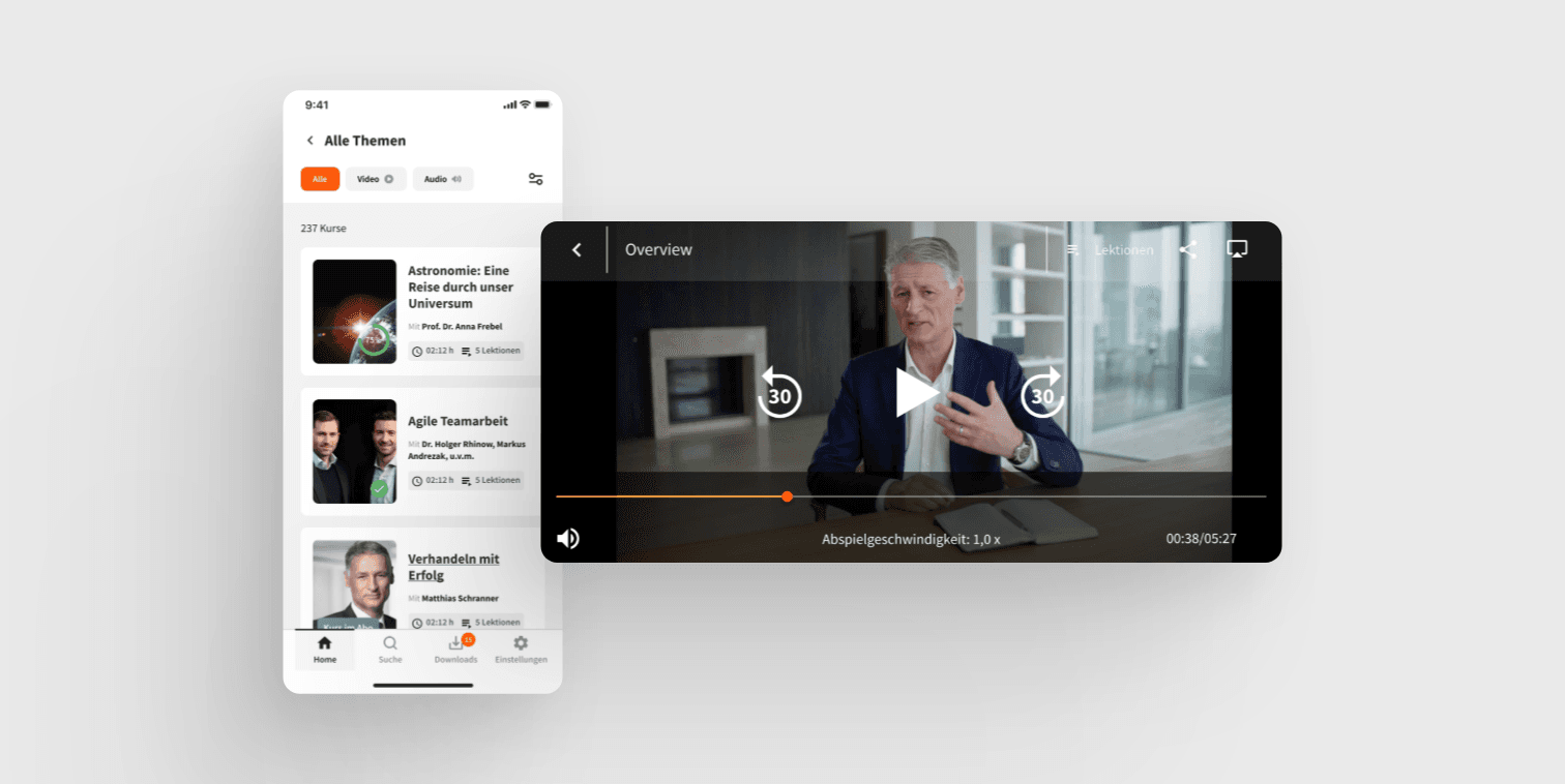 Wir entwickeln eine App für Smartphones und Tablets, für iOS und Android. Alle Inhalte werden mobil nutzbar. Eine besondere Herausforderung ist das Schaffen einer klaren Nutzerführung – egal ob mit einem Abonnement Vollzugriff auf alle Inhalte besteht oder ob im Rahmen einer beruflichen Fortbildung nur ein Kurs zur Verfügung steht. Zudem erfüllt die App einen klaren Nutzen, mit dem bestehenden Web-Produkt nicht bestand: Inhalte können offline gespeichert werden und sind so selbst bei schlechter Internetverbindung im Zug oder Flugzeug nutzbar.